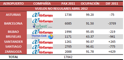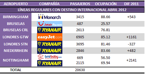 Ocupaciones muy buenas en general en el tráfico internacional, a destacar NRN. Y VLG mejora ocupación en su primer mes completo. Si siguen así el mes que viene será aún mejor. Una pena que no empezara a operar la ruta a LPL de RYR que seguro que hubiera funcionado muy bien.