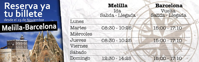 Horarios Melilla-Barcelona: